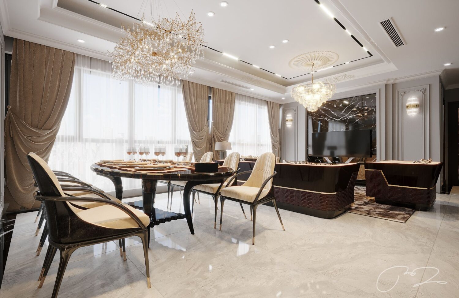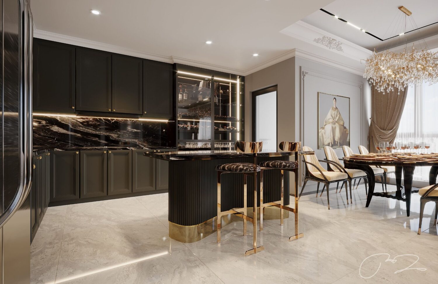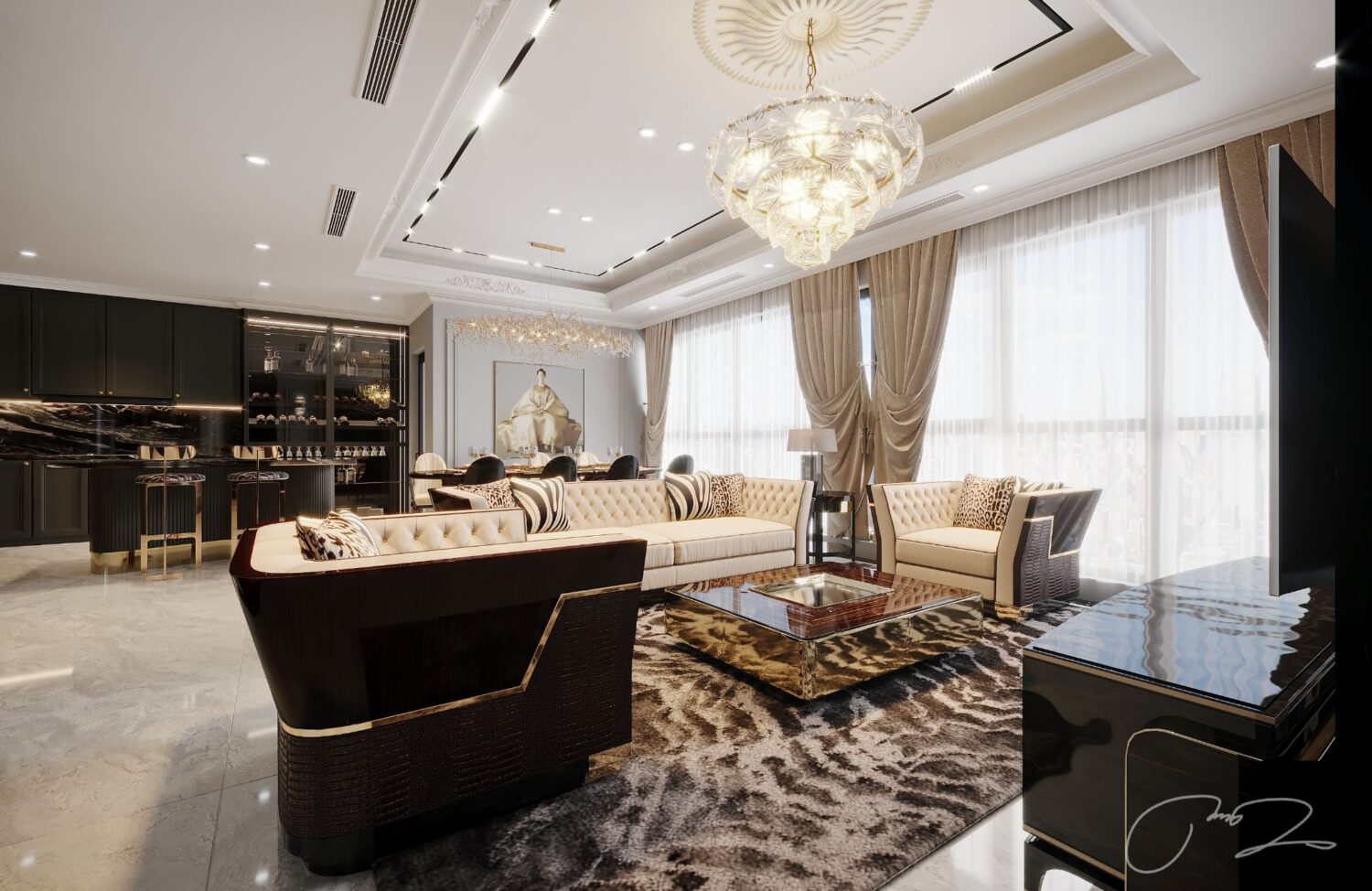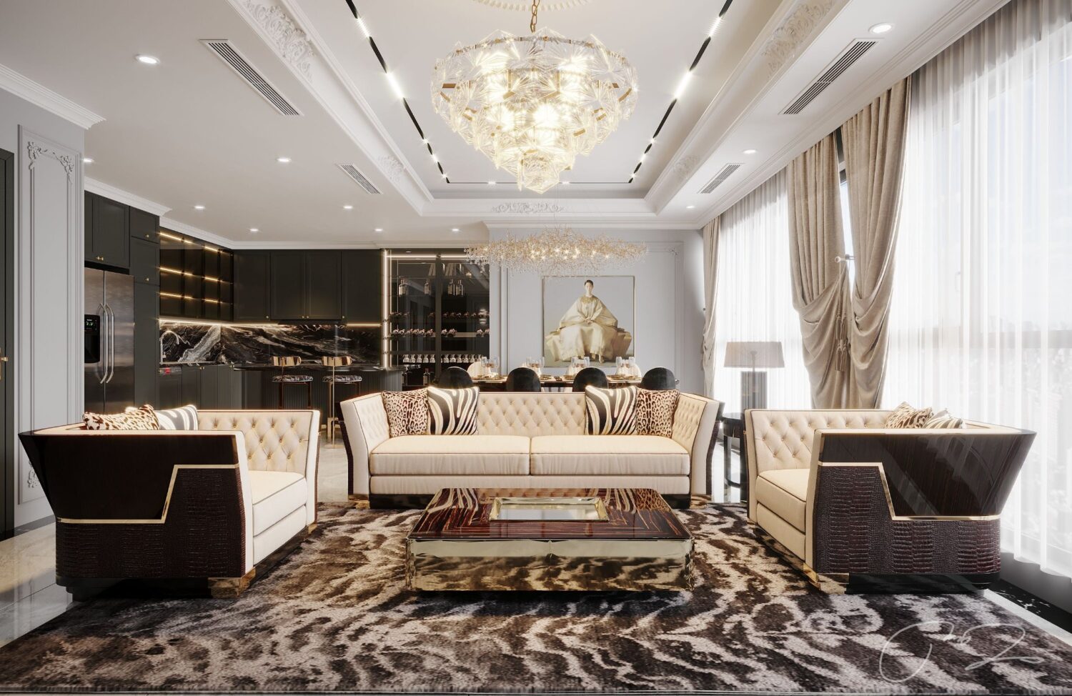 10125. Free 3D Living Room – Kitchen Interior Model Download by Quan Tran