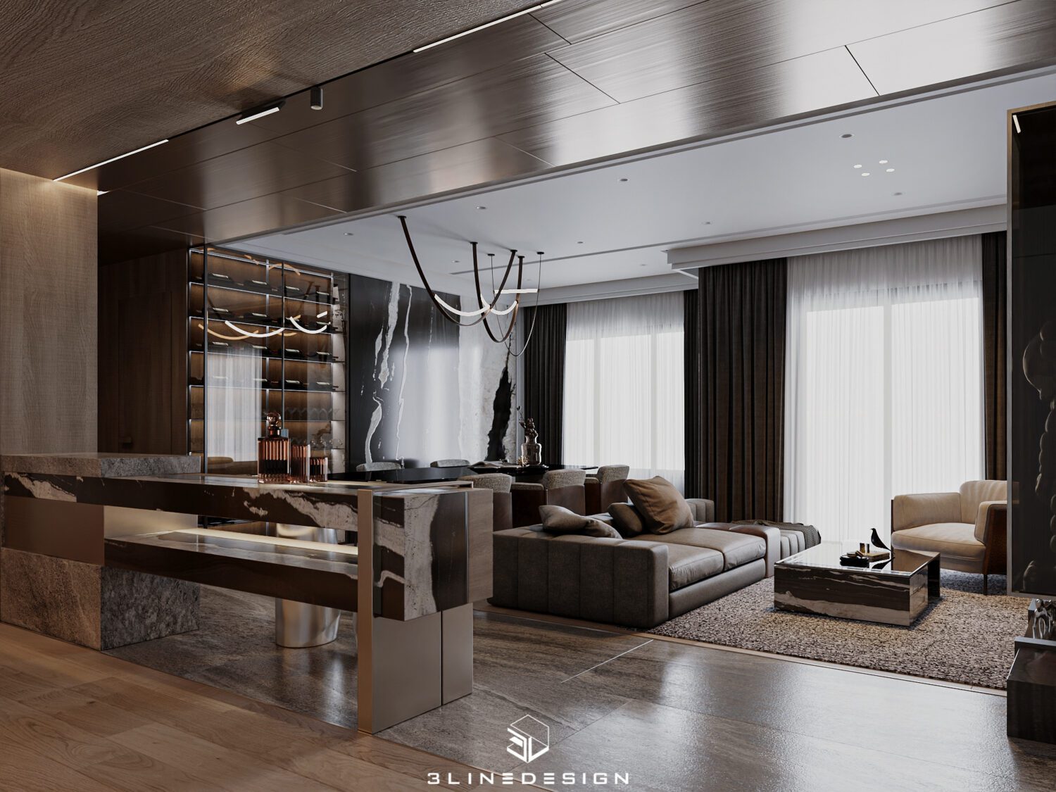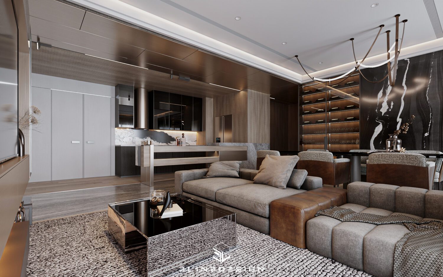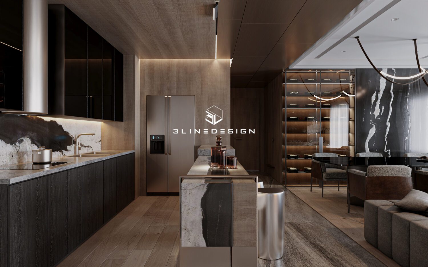 13047. 3D Living Room – Kitchen Interior Model Download by Ninh
