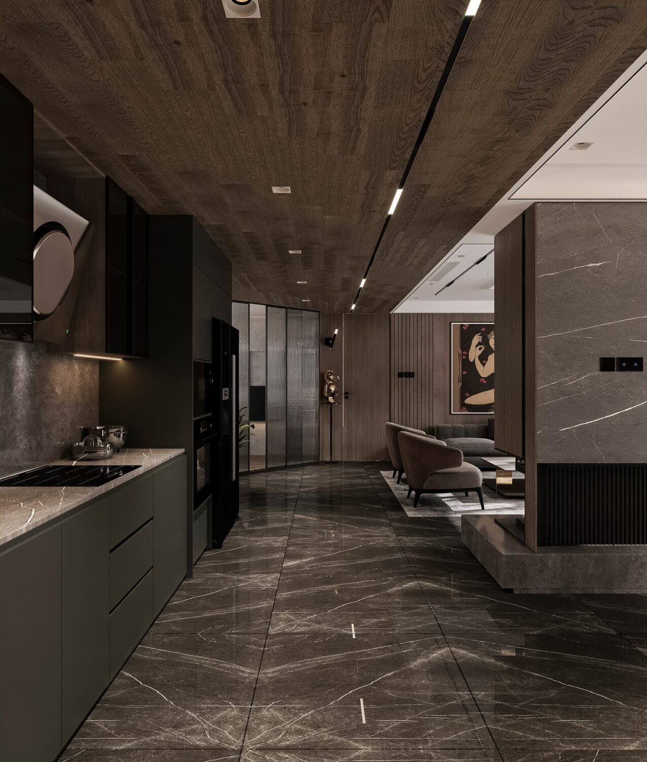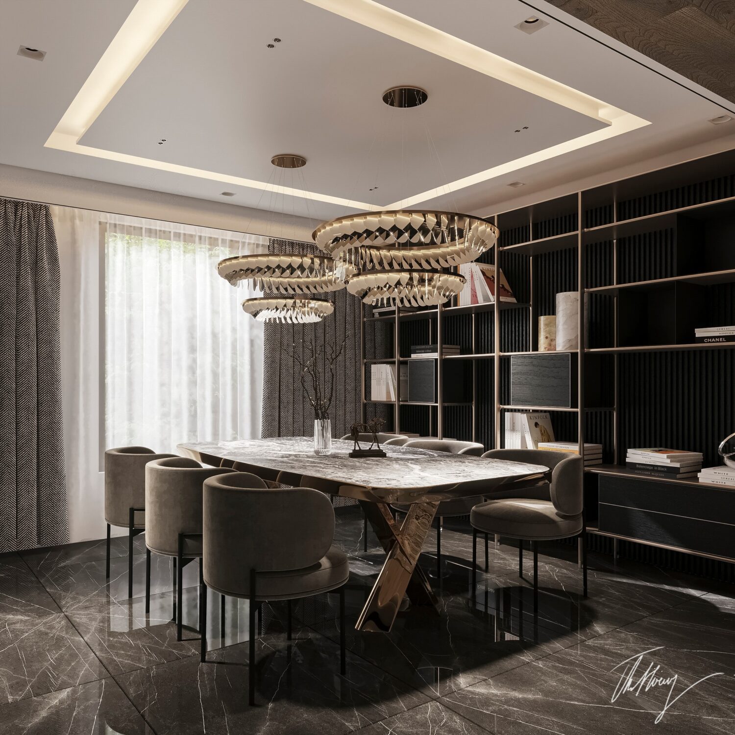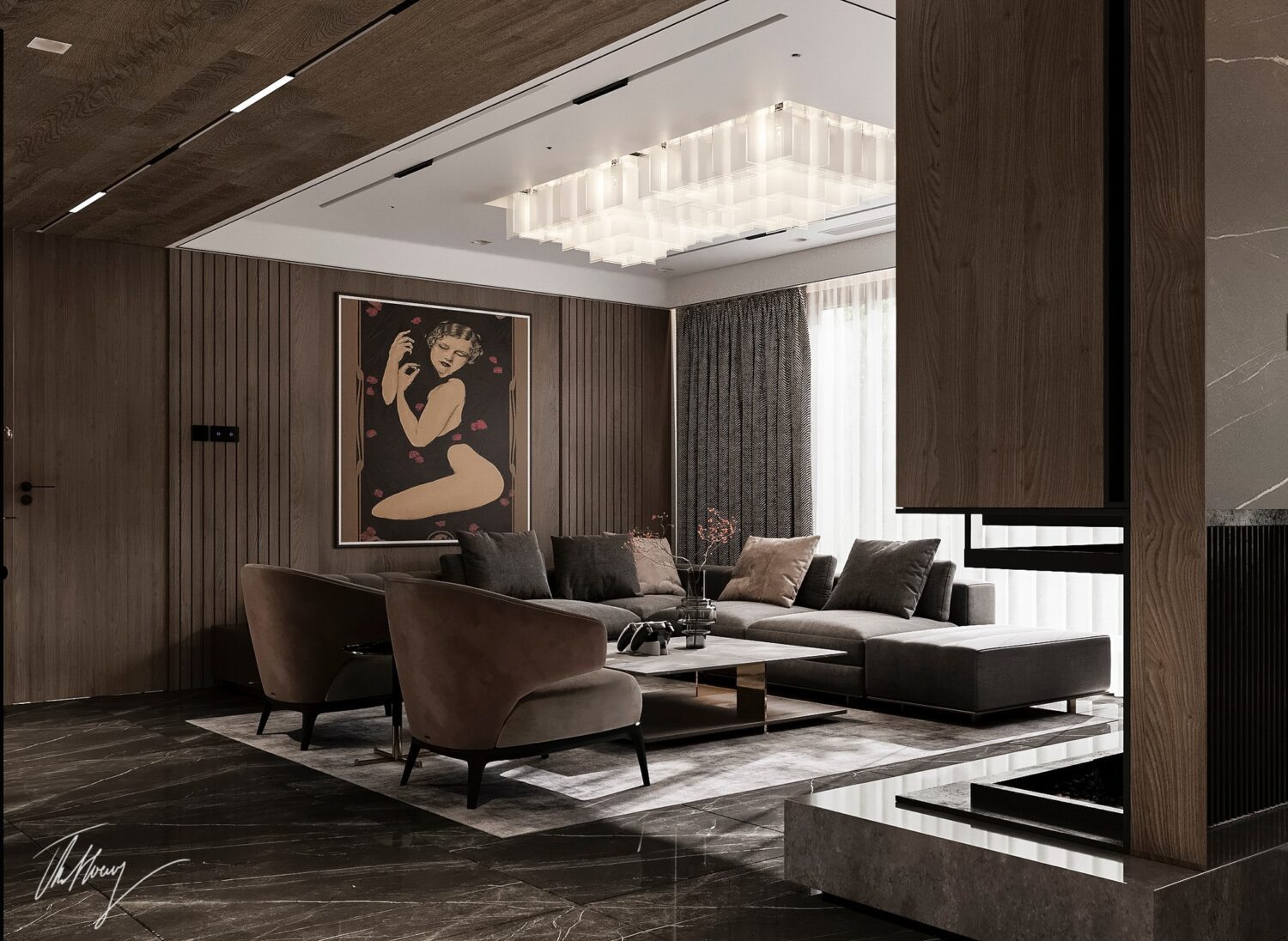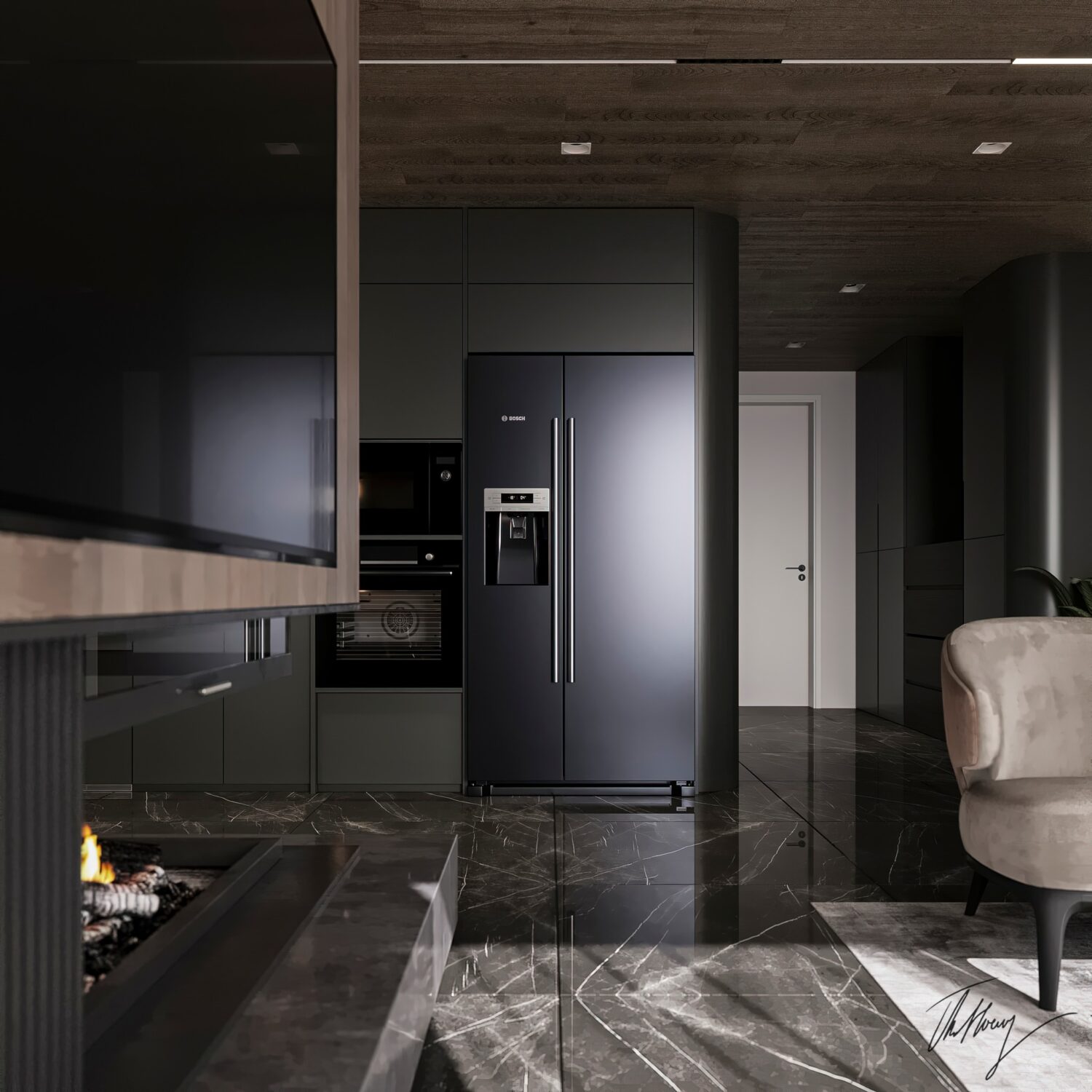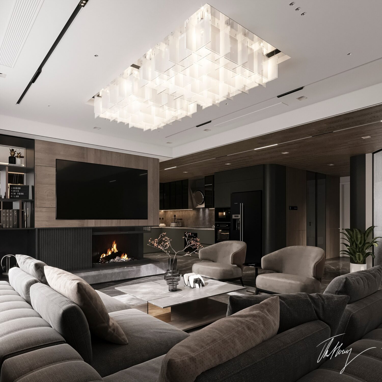 13189. 3D Living Room – Kitchen Interior Model Download by The Hoang