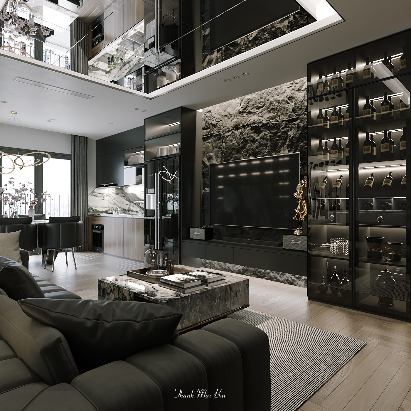 13325. 3D Living Room – Kitchen Interior Model Download by Thanh Mai Bui