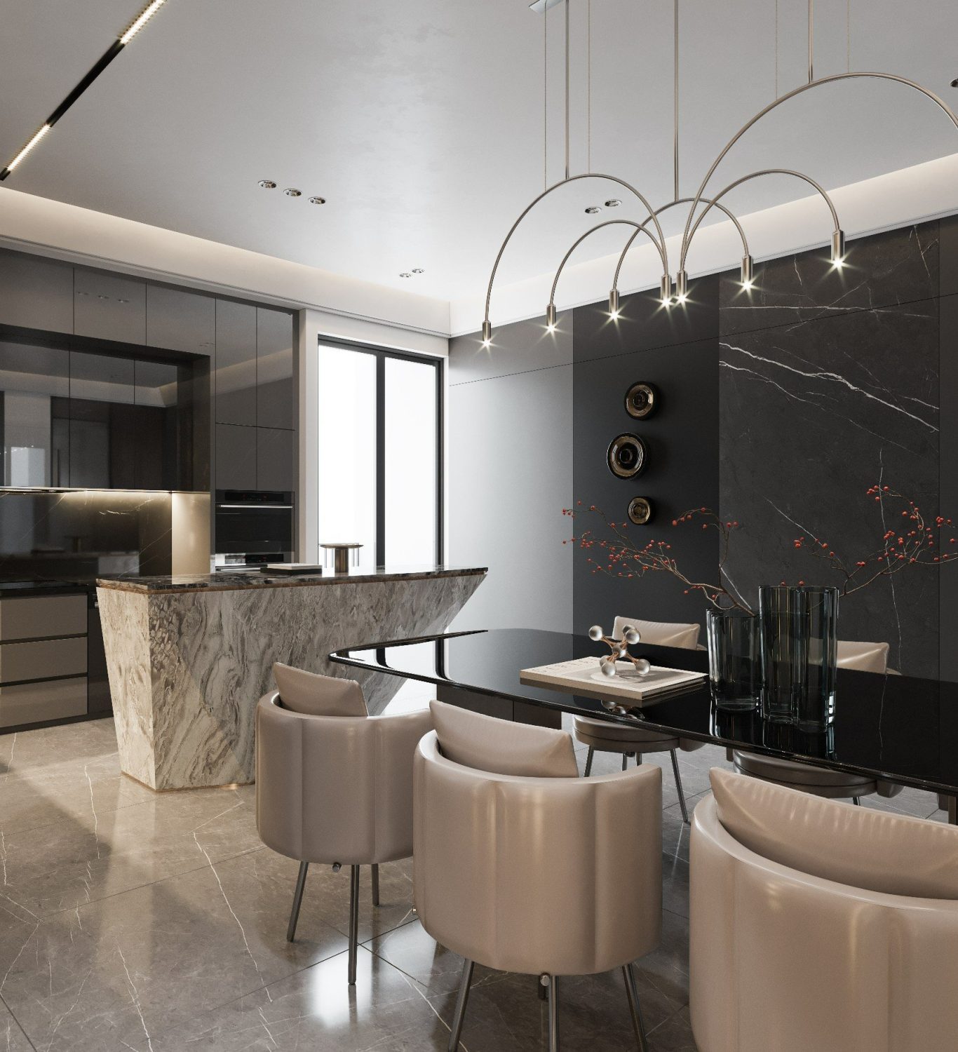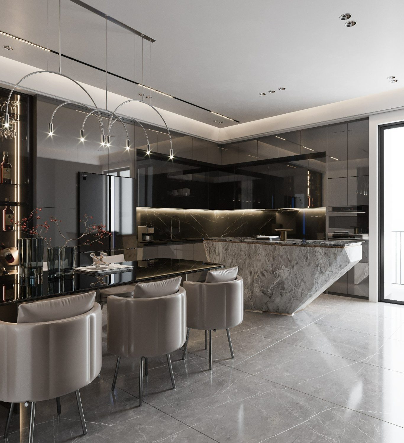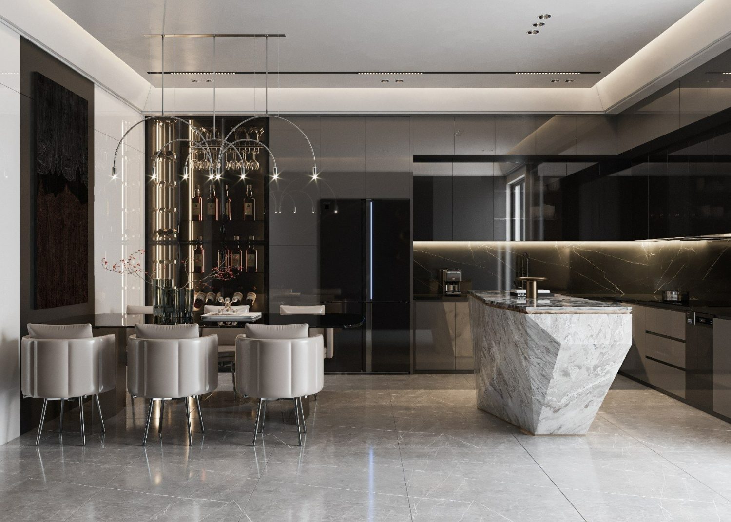 13495. 3Ds Max Living Room – Kitchen Interior Model Download by Quoc Tung