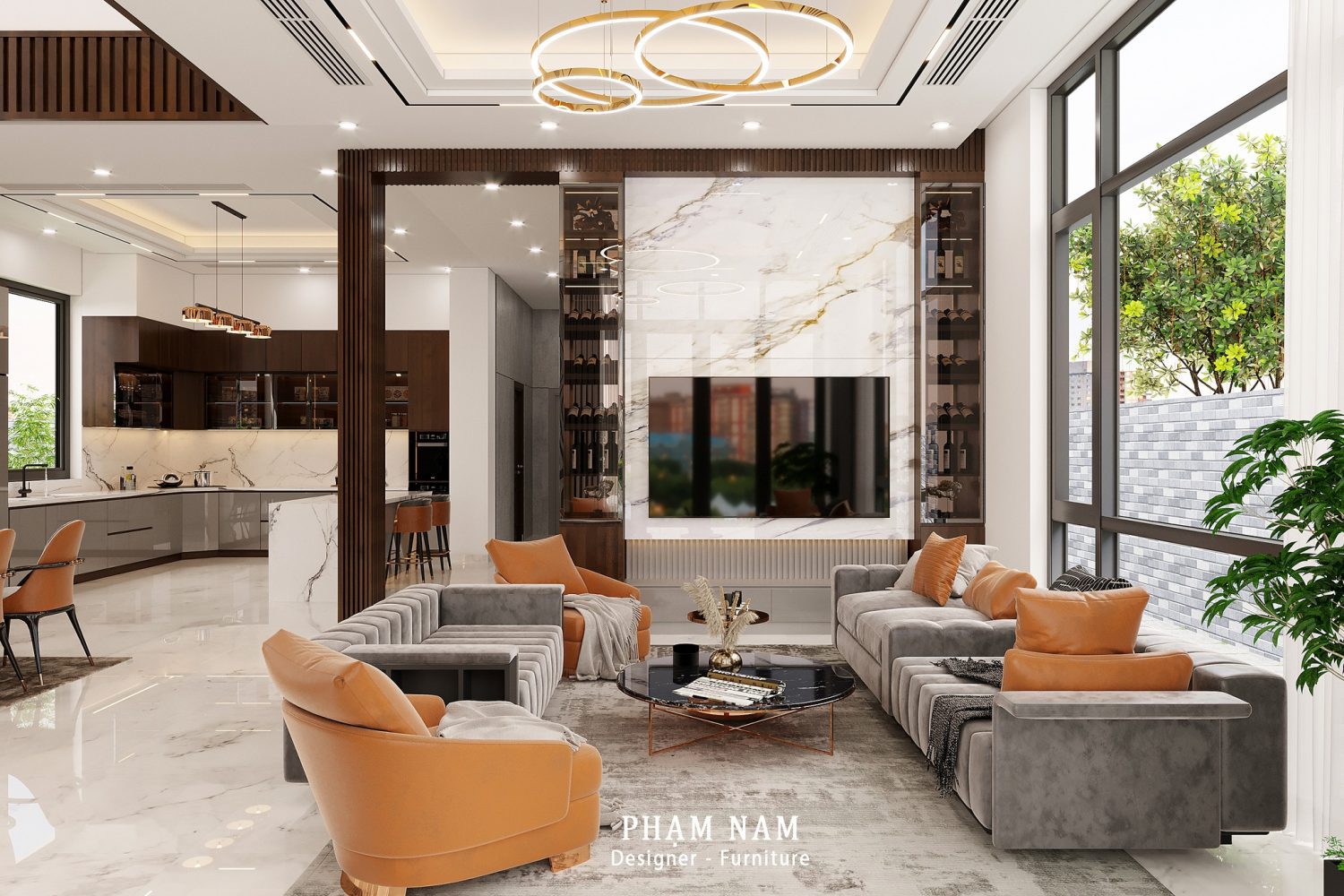 13523. 3Ds Max Living Room – Kitchen Interior Model Download by Pham Nam