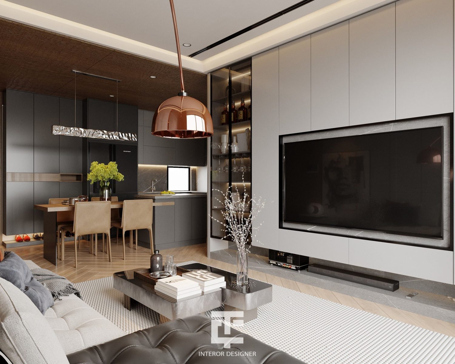 13539. 3Ds Max Living Room – Kitchen Interior Model Download by Nguyen Canh Tuan
