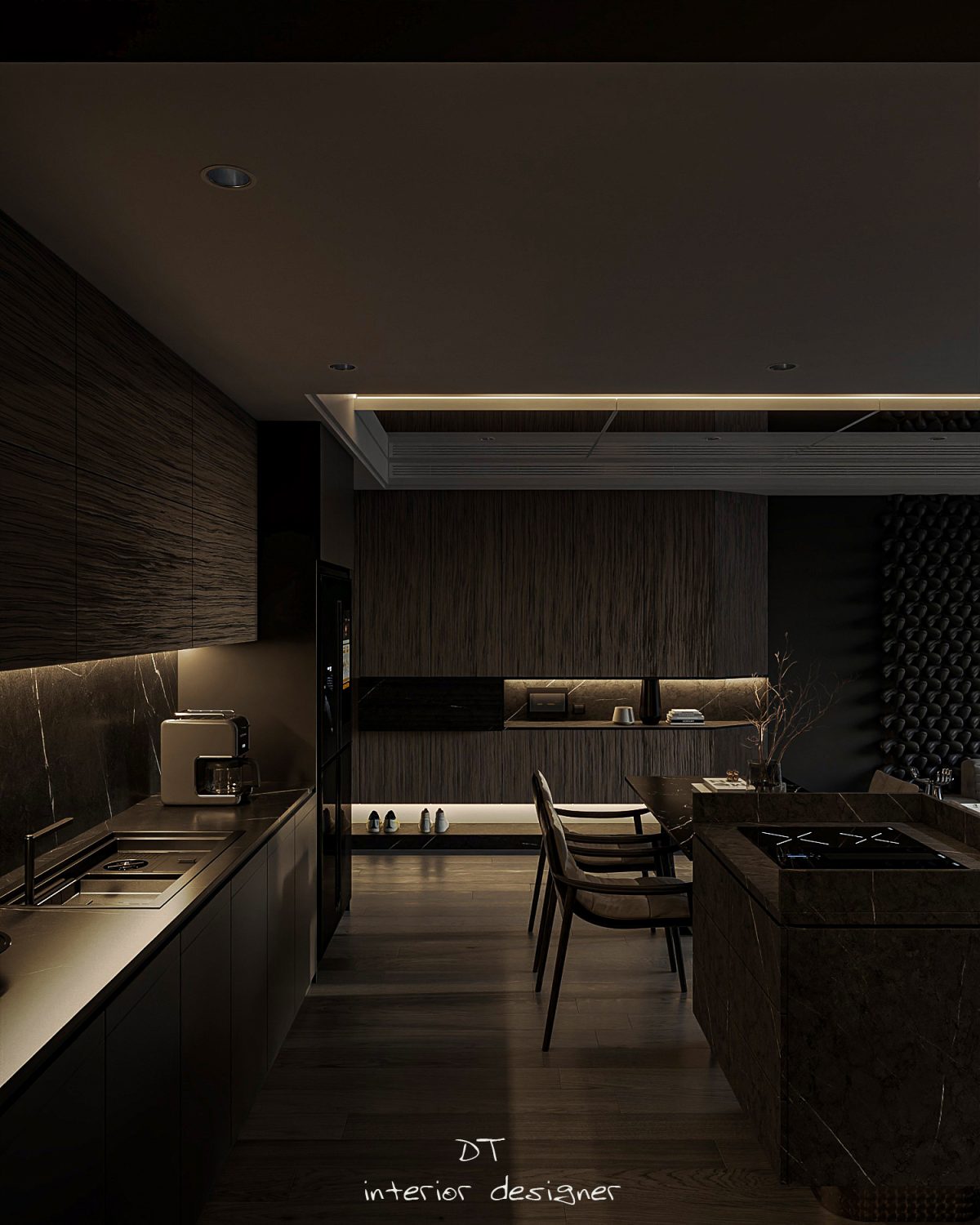 13543. 3Ds Max Living Room – Kitchen Interior Model Download by Duy Trinh