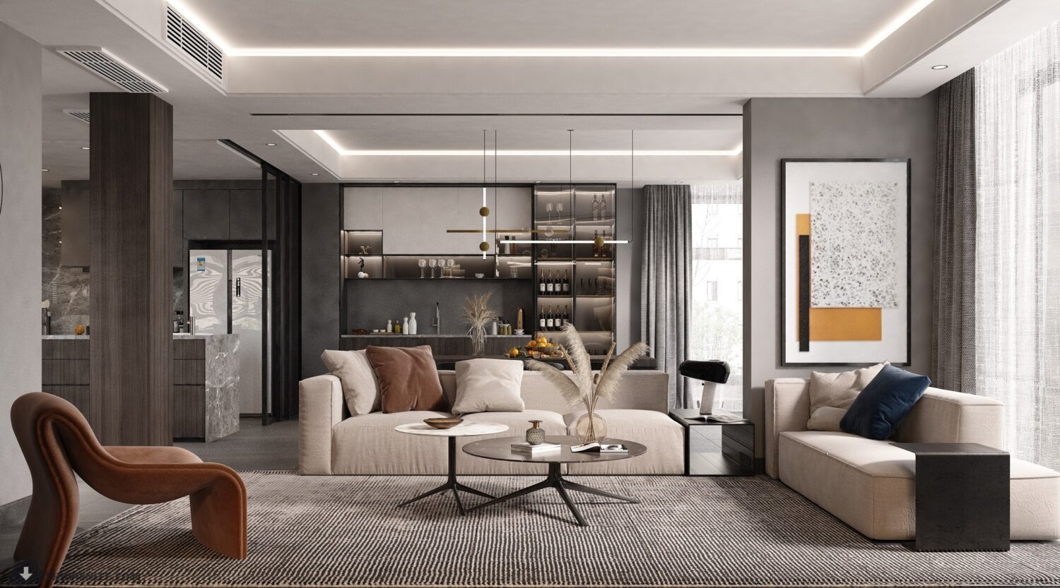 13582. 3Ds Max Living Room Interior Model Download by Huy Hieu Lee