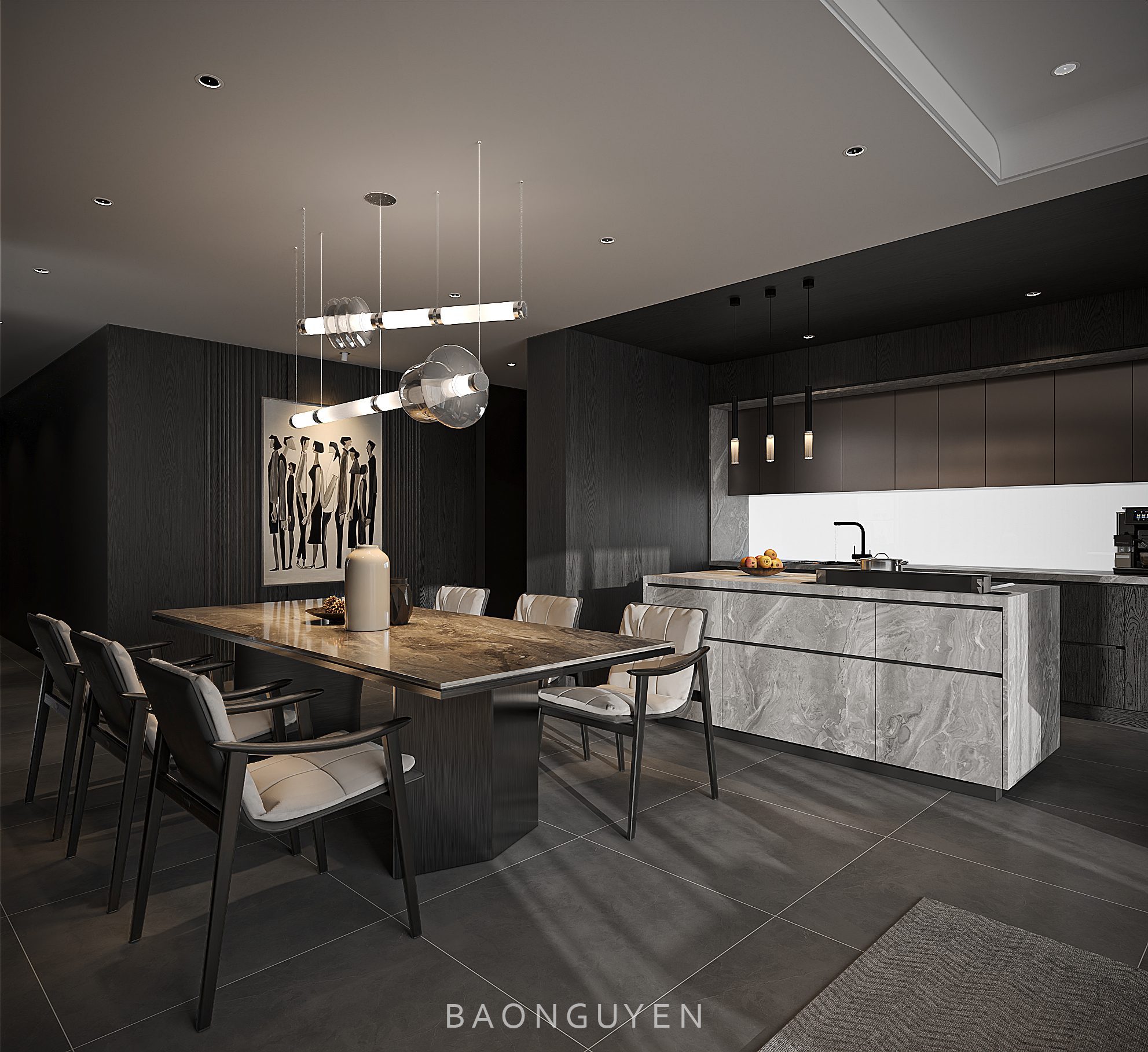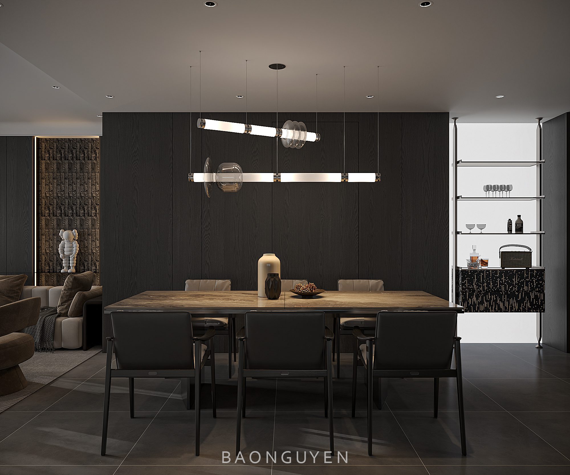13695. 3Ds Max Living Room – Kitchen Interior Model Download by Nguyen Bao