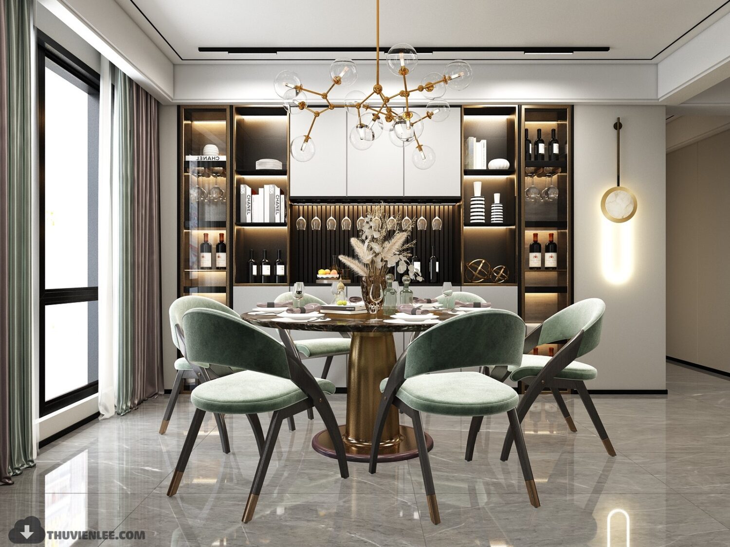 9613. 3D Interior Dining room Model For Free Download by Huy Hieu Lee